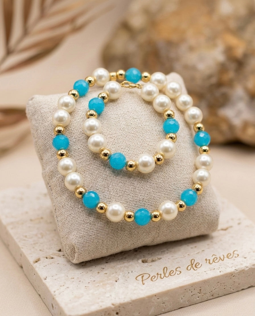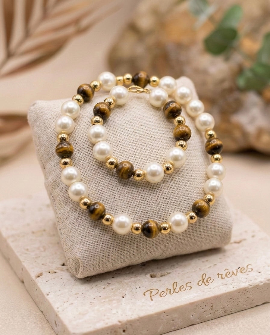• Énergie & Sérénité : En lithothérapie, la cornaline est réputée pour booster la créativité et la vitalité, tandis que la perle apporte calme et apaisement.